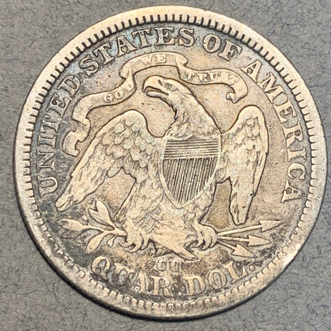1876 CC Seated Liberty Quarter, VF, 2 tiny, light rim bruises