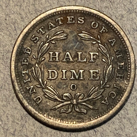 1839-O Seated Liberty Half Dime, Grade= XF, rotated reverse 90 degrees left