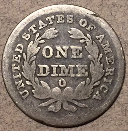 1838-O Seated Liberty Dime, Grade= VG, no stars