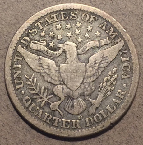 1901-O Barber Quarter, Grade= F, 2 small hits in front of LIBERTY