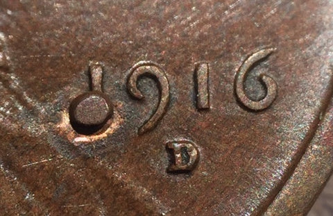 1916-D Lincoln Cent, Grade= AU55, dot error over date