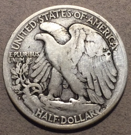 1921-S Walking Half Dollar, Grade= F, a couple tiny field hits