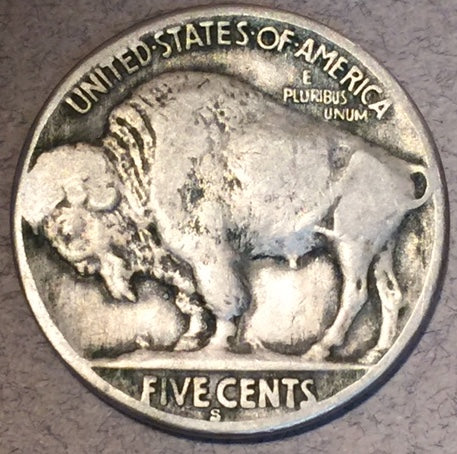 1921-S Buffalo Nickel, Grade= F15, sharp date. Exact coin imaged.